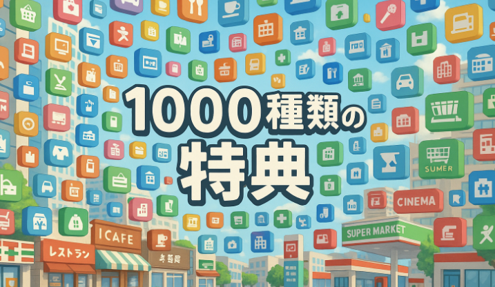 映画やカラオケ、旅行やレジャー、日常のお買い物まで、1,000種類以上の特典をご用意しています。